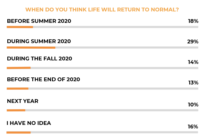 IPSOS data shows that nearly 50% of people believe that life will return to normal by or during summer 2020.