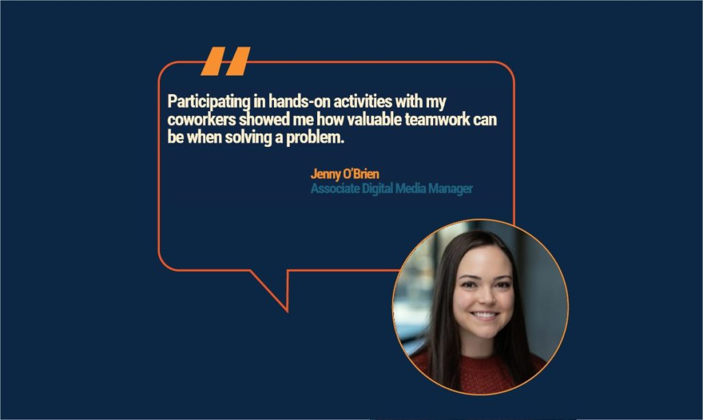 “Participating in hands-on activities with my coworkers showed me how valuable teamwork can be when solving a problem.”